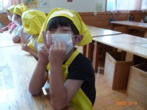 初回ということで今回はエプロン・三角巾のつけ方などの説明をしました。